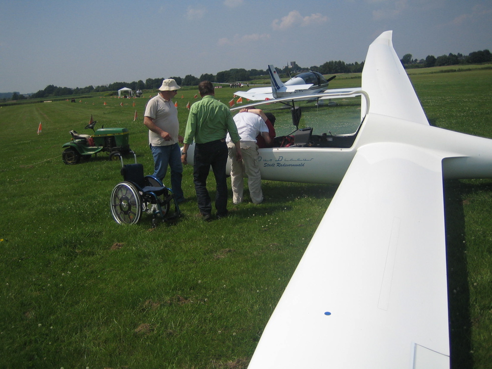 | Damit eröffnet sich Menschen mit körperlicher Behinderung die einmalige Chance, das unbeschreibliche Gefühl des Segelfliegens nicht nur mitzuerleben, sondern selbst auszukosten: als aktive Segelflugschüler im Verein, und damit weit über das viertägige Jugendcamp hinaus. |