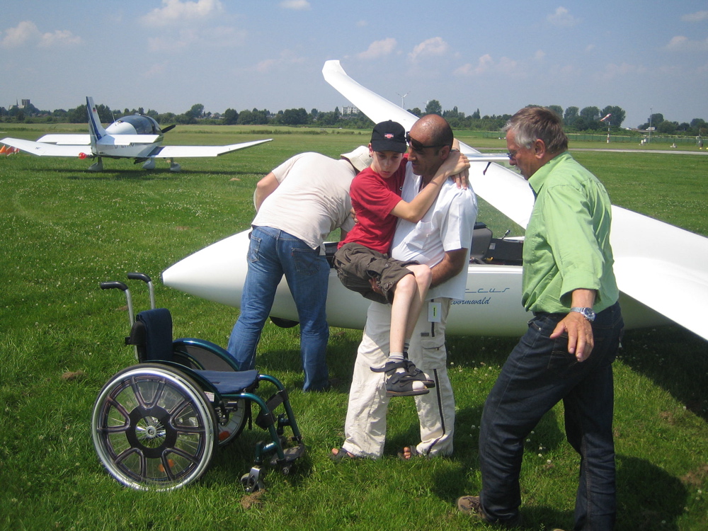 Einmal selbst ein Flugzeug steuern in den vergangenen Jahren wünschten sich das viele Jugendliche, nachdem sie zum ersten Mal in einem Doppelsitzer mitfliegen durften. Der Wunsch ist verständlich, doch eine körperliche Behinderung scheint da zunächst eine unüberwindliche Barriere: Ein normales Segelflugzeug wird mit der Hand am Steuerknüppel gelenkt, und mit den Füßen über die Pedale.